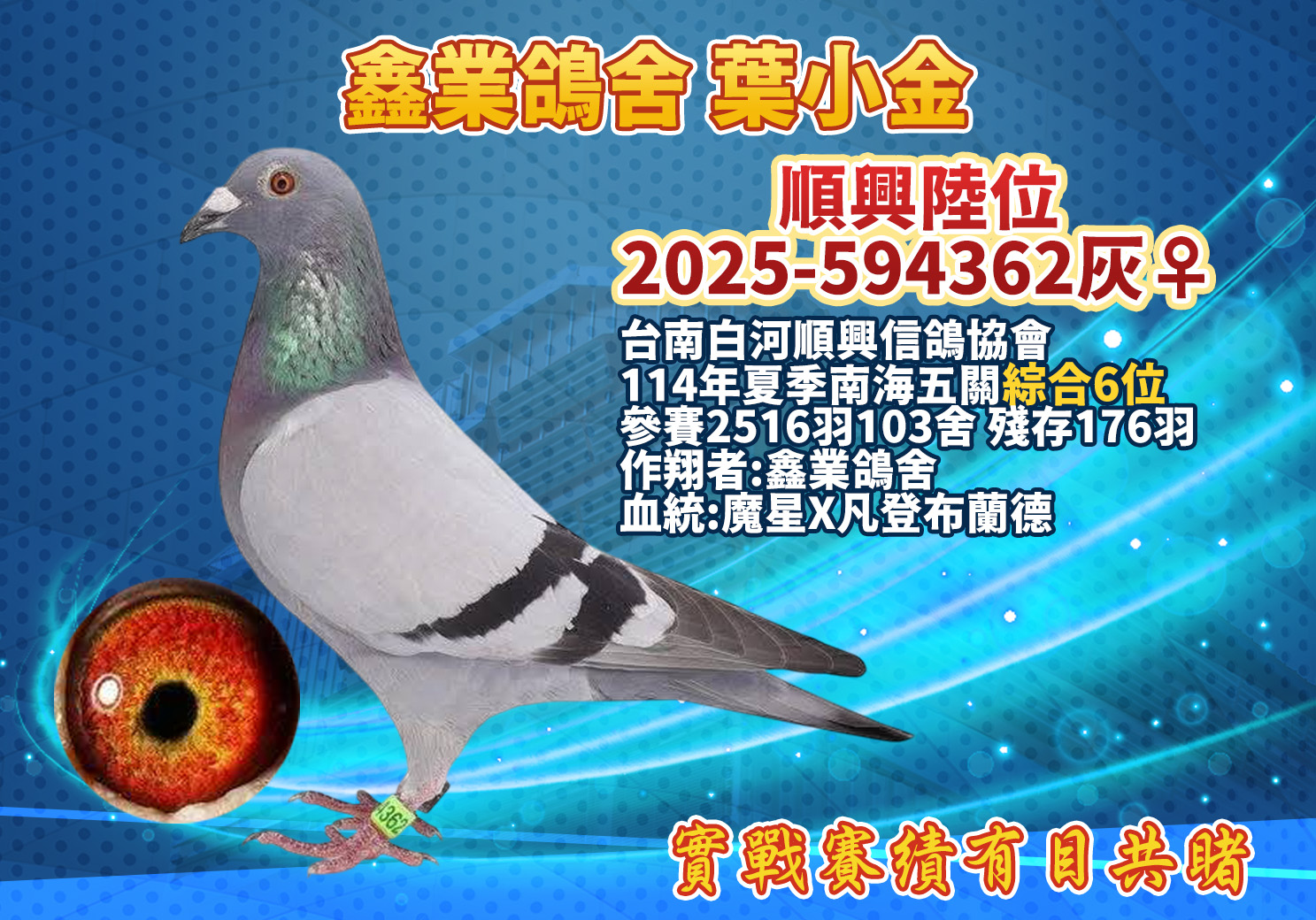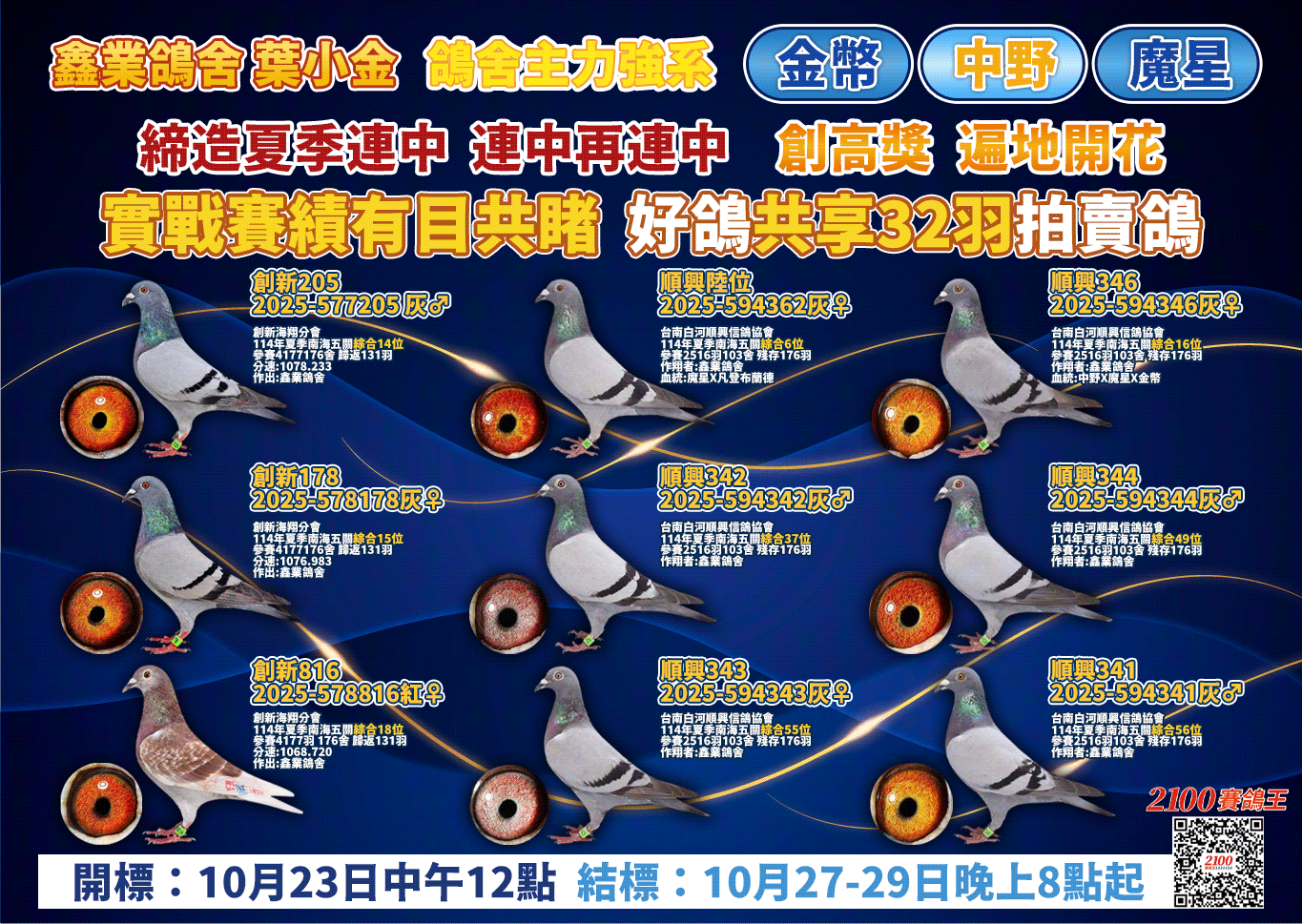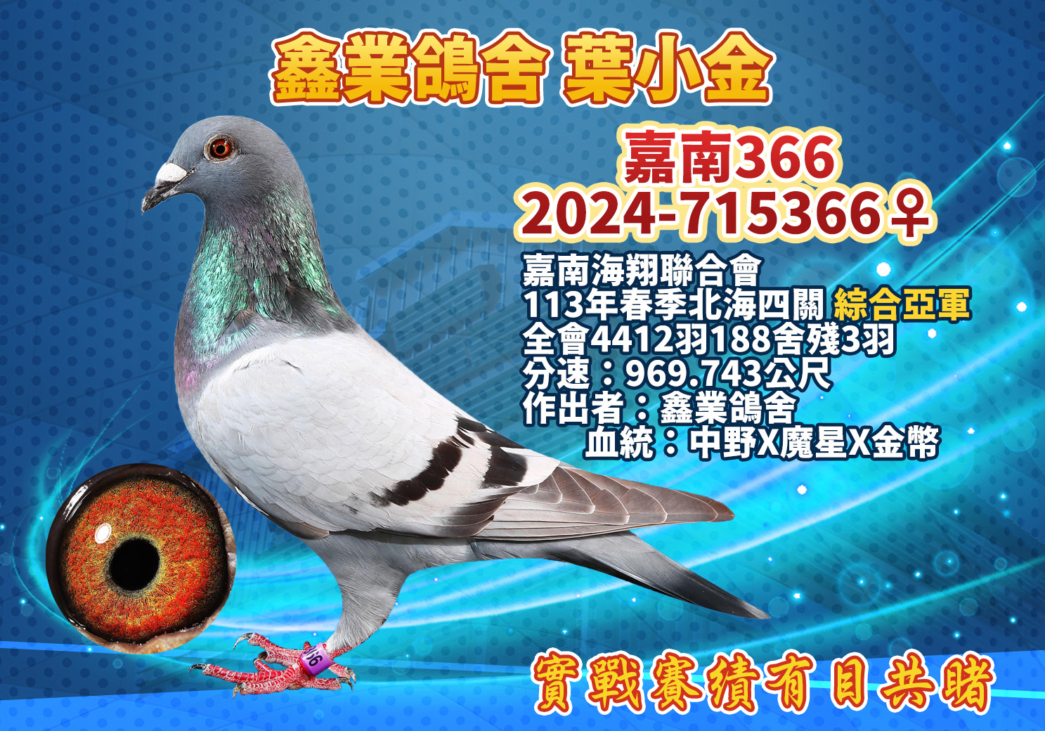 ◉【鑫業鴿舍 葉小金】鑫榮耀‧鑫金彩‧鑫佳績,增強戰力首選