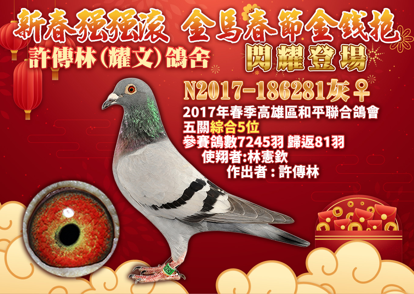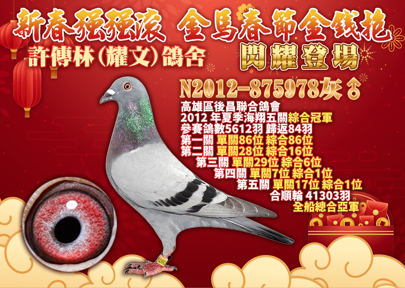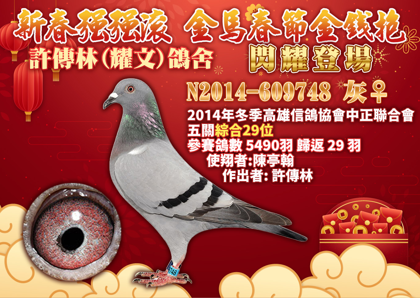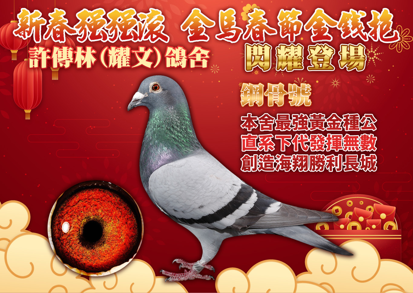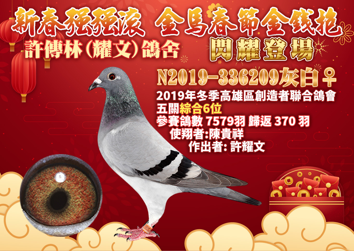 ◉拍賣|【許傳林(耀文)鴿舍】金馬春節金錢抱|23羽 入賞鴿原配對 13羽紀錄鴿作出→開標:2月12日 中午12點,結標:2月23日 晚上8點起