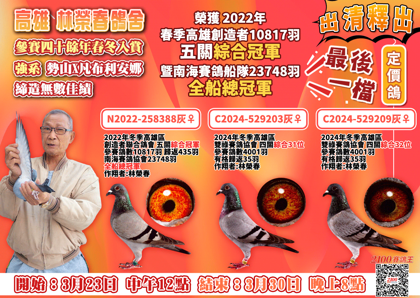 ◉定價|【林榮春鴿舍】強系:勢山×凡布利安娜 締造無數佳績|最後一檔!→開始:3月23日 中午12點,結束:3月30日 晚上8點