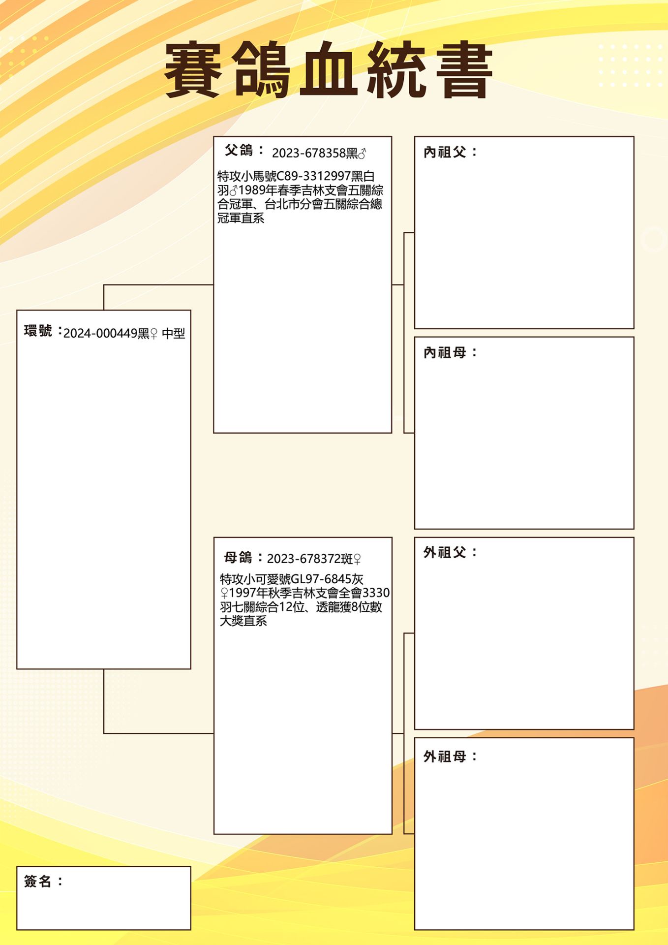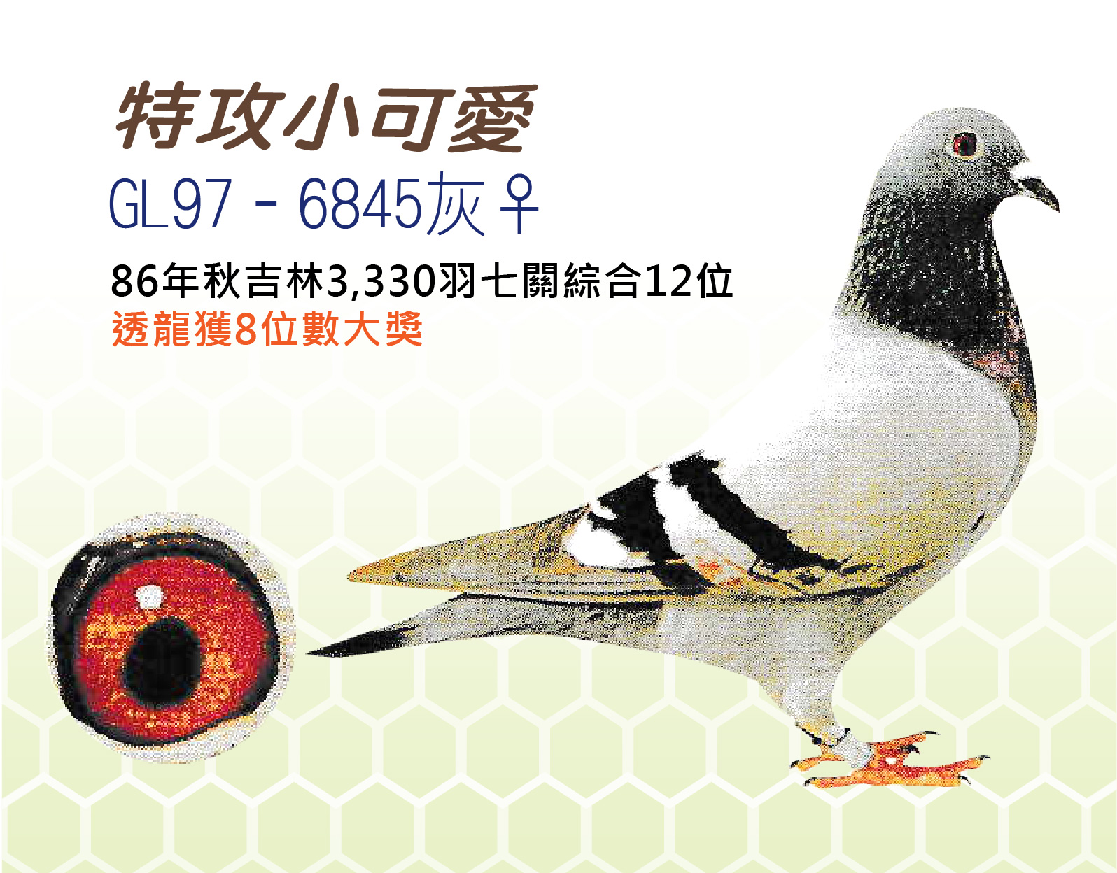 特攻小可愛號 GL97-6845灰♀ 1997年秋季吉林支會全會3330羽七關綜合12位、透龍獲8位數大獎直系
