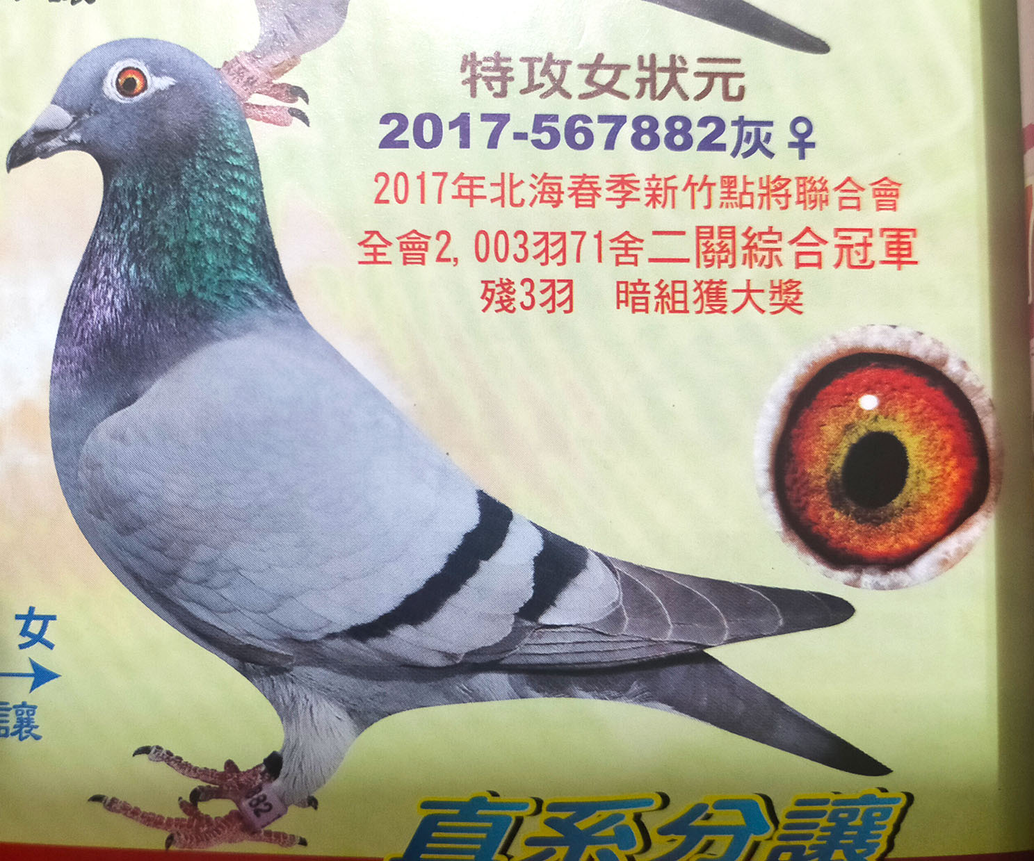特攻女狀元 2017-567882灰♀ 2017年春季新竹點將聯合會全會2003羽71舍二關綜合冠軍(殘3羽)、暗組獲大獎直系