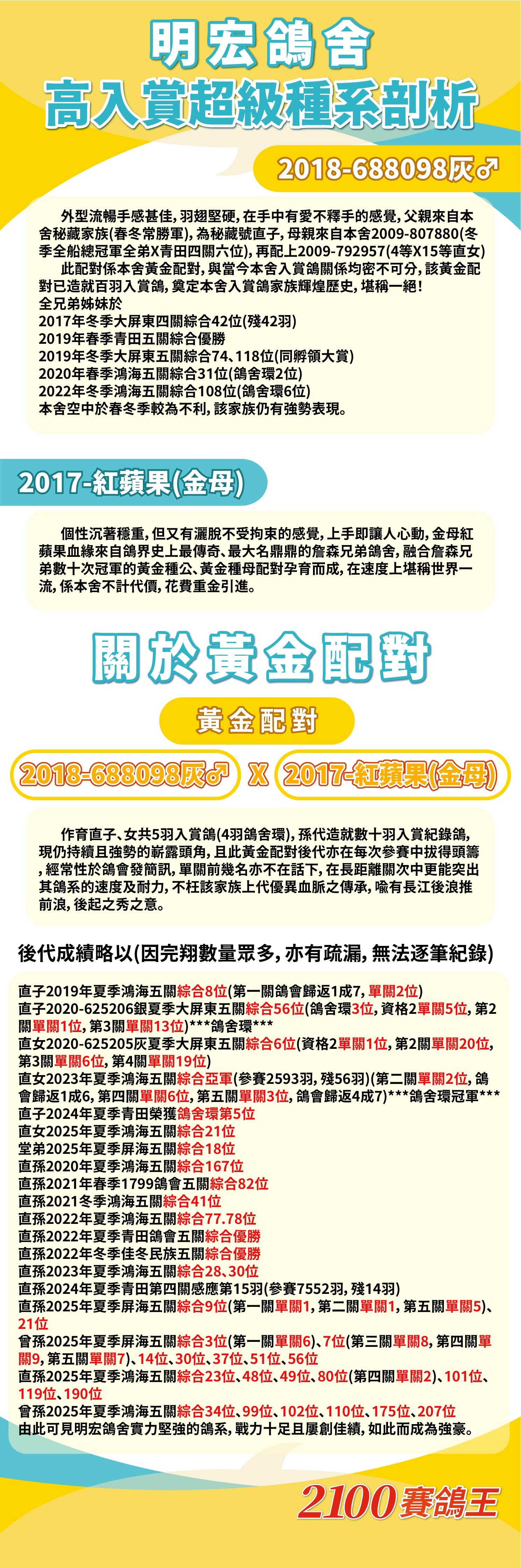◉拍賣|【鑫業鴿舍】鑫榮耀‧鑫金彩‧鑫佳績,增強戰力首選→開標:10月23日 中午12點,結標:10月27-29日 晚上8點