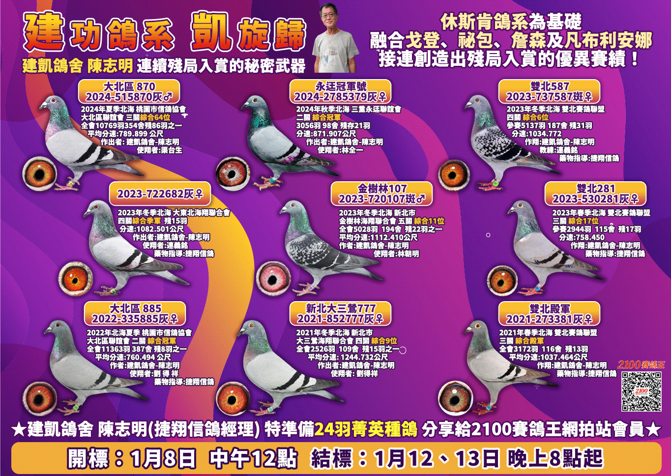 ◉拍賣|【建凱鴿舍】建功鴿系,凱旋歸→開標:1月8日 中午12點,結標:1月12、13日 晚上8點起