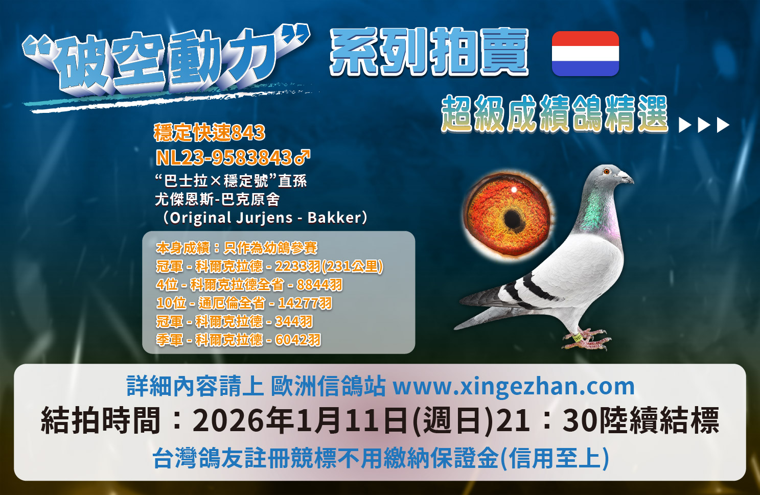 ◉定價|【李氏兄弟鴿舍 李安財】專剋側風、低歸返→開始:1月2日 中午12點,結束:1月13日 晚上8點
