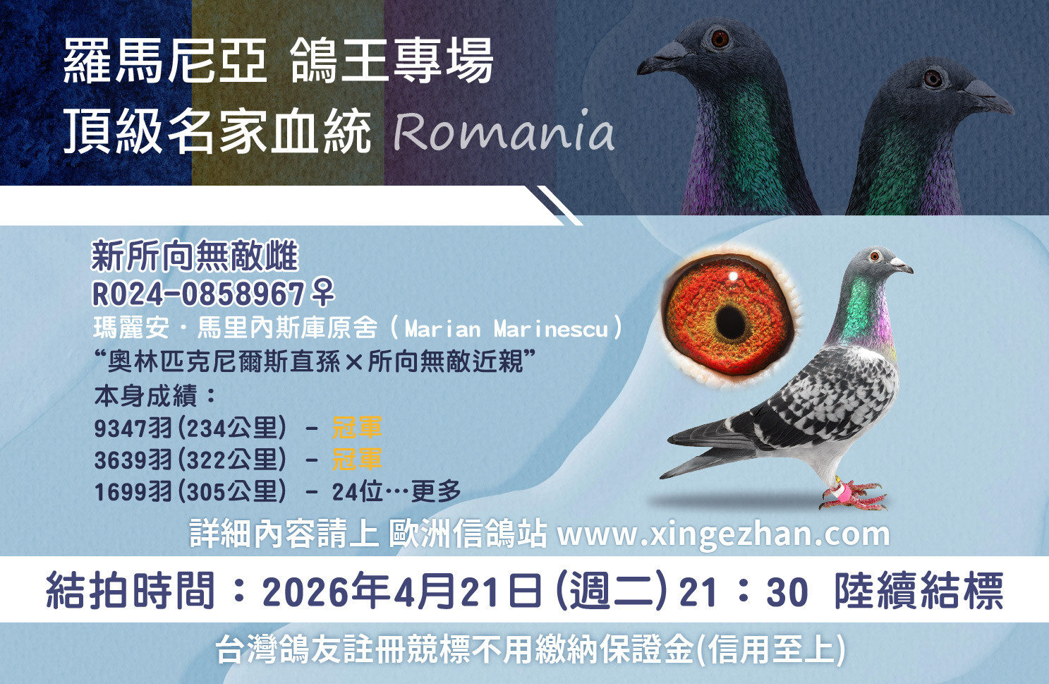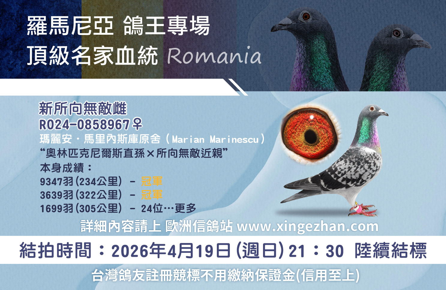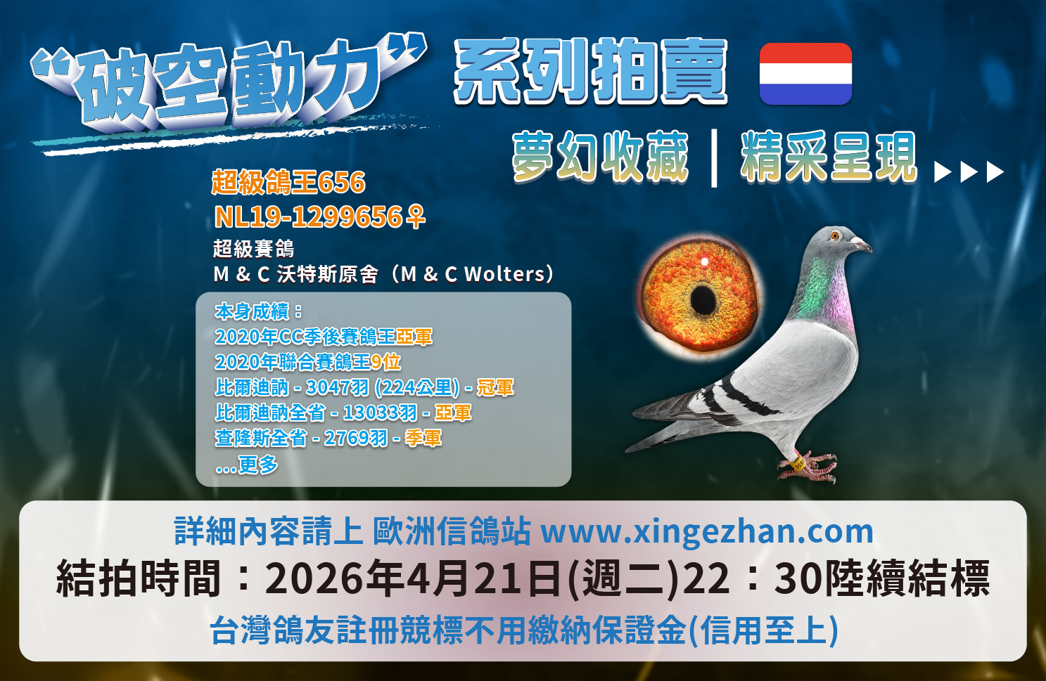 ◉拍賣|【金財神鴿舍】南北海翔常勝強豪|冠軍的創造者→開標:4月23日 中午12點,結標:4月27-29日 晚上8點起