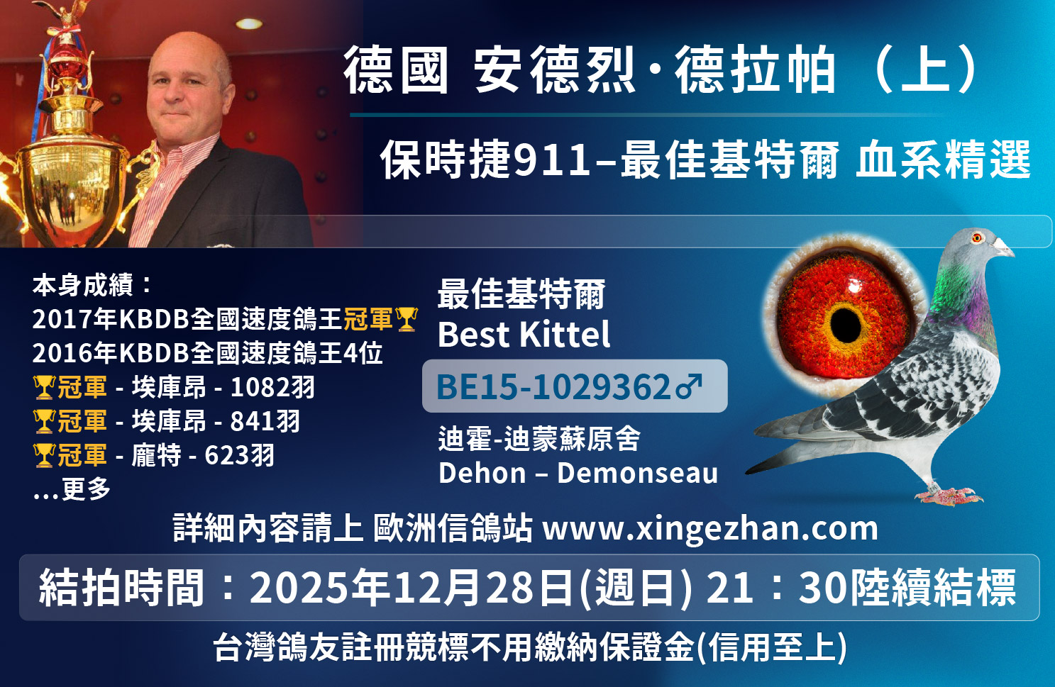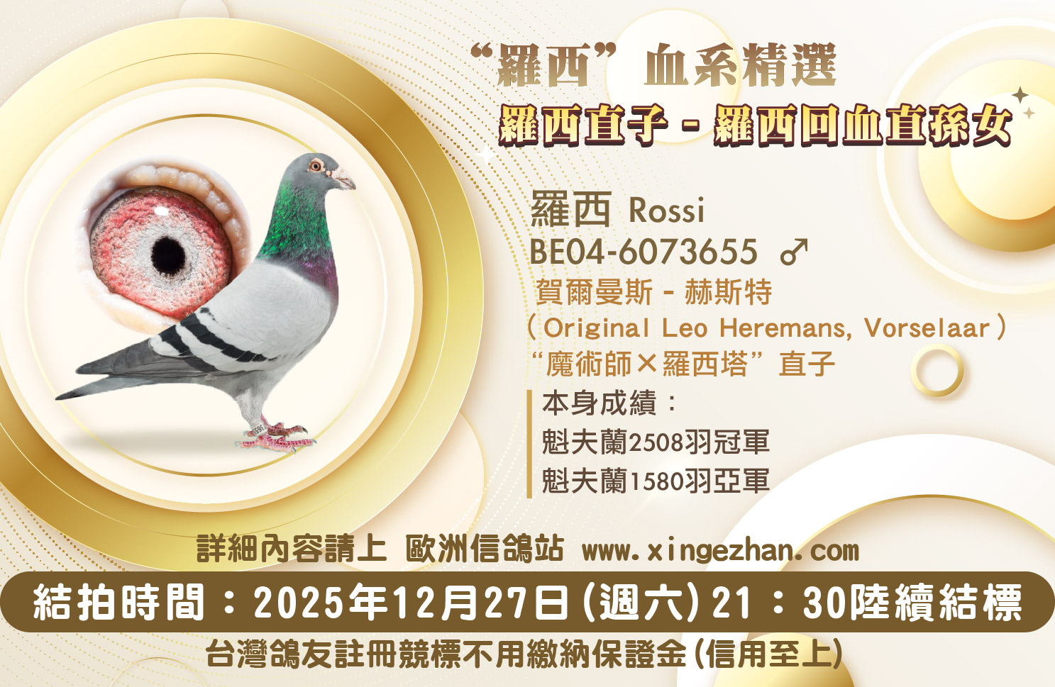 ◉拍賣|【王孜益 螺絲王鴿舍】莊氏傳奇,再創神奇!2025年壓軸好戲→開標:12月18日 中午12點,結標:12月22-24日 晚上8點起