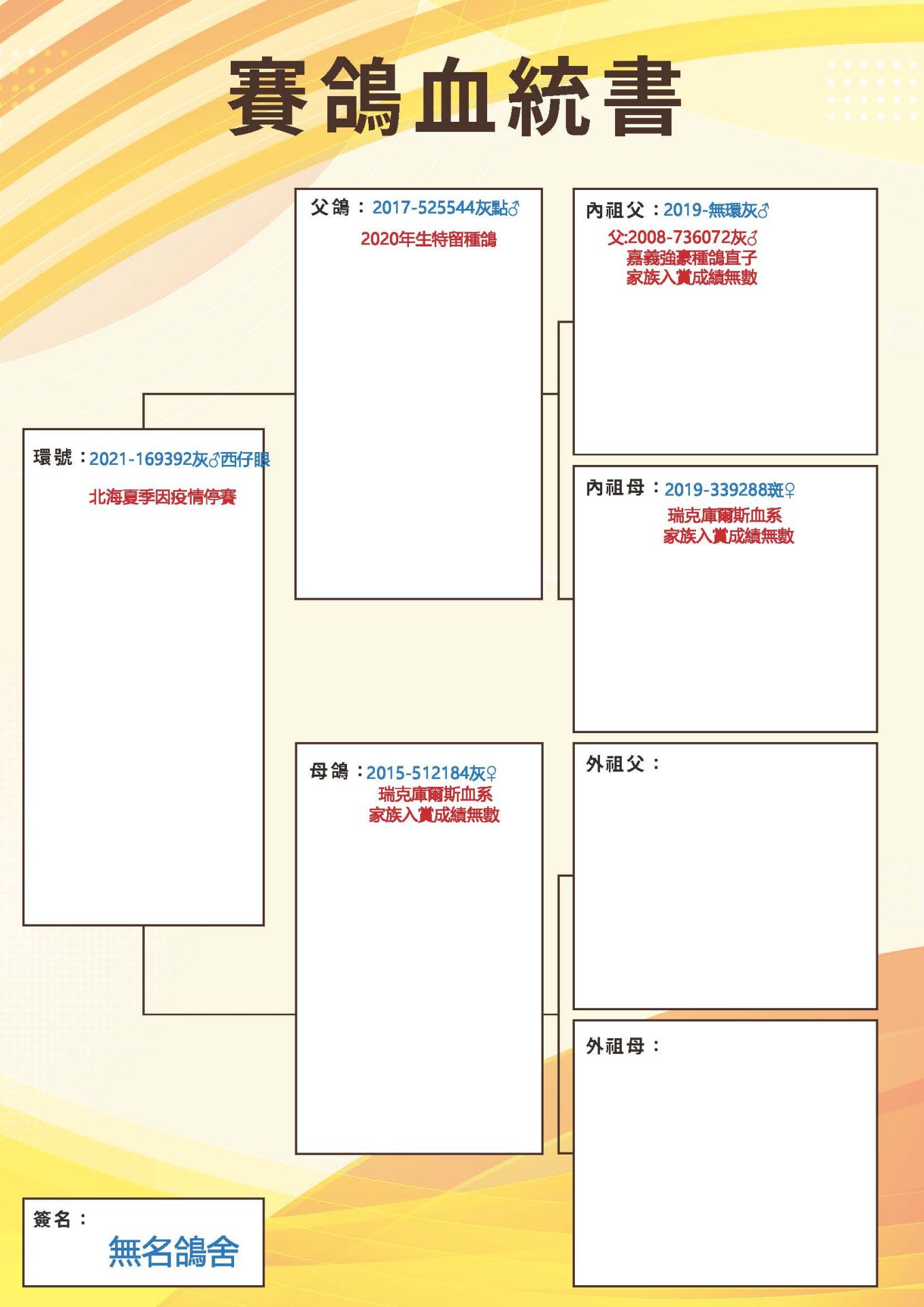 父: 2017-525544灰點♂(2020年生特留種鴿)嘉義強豪鴿系X瑞克庫爾斯血系