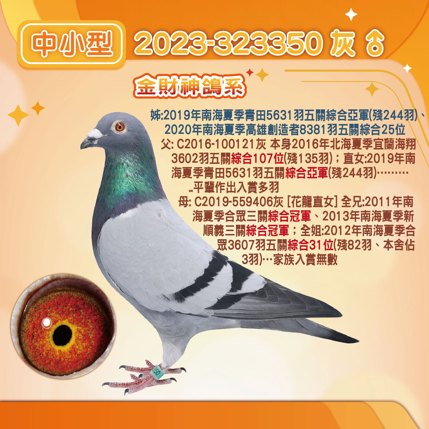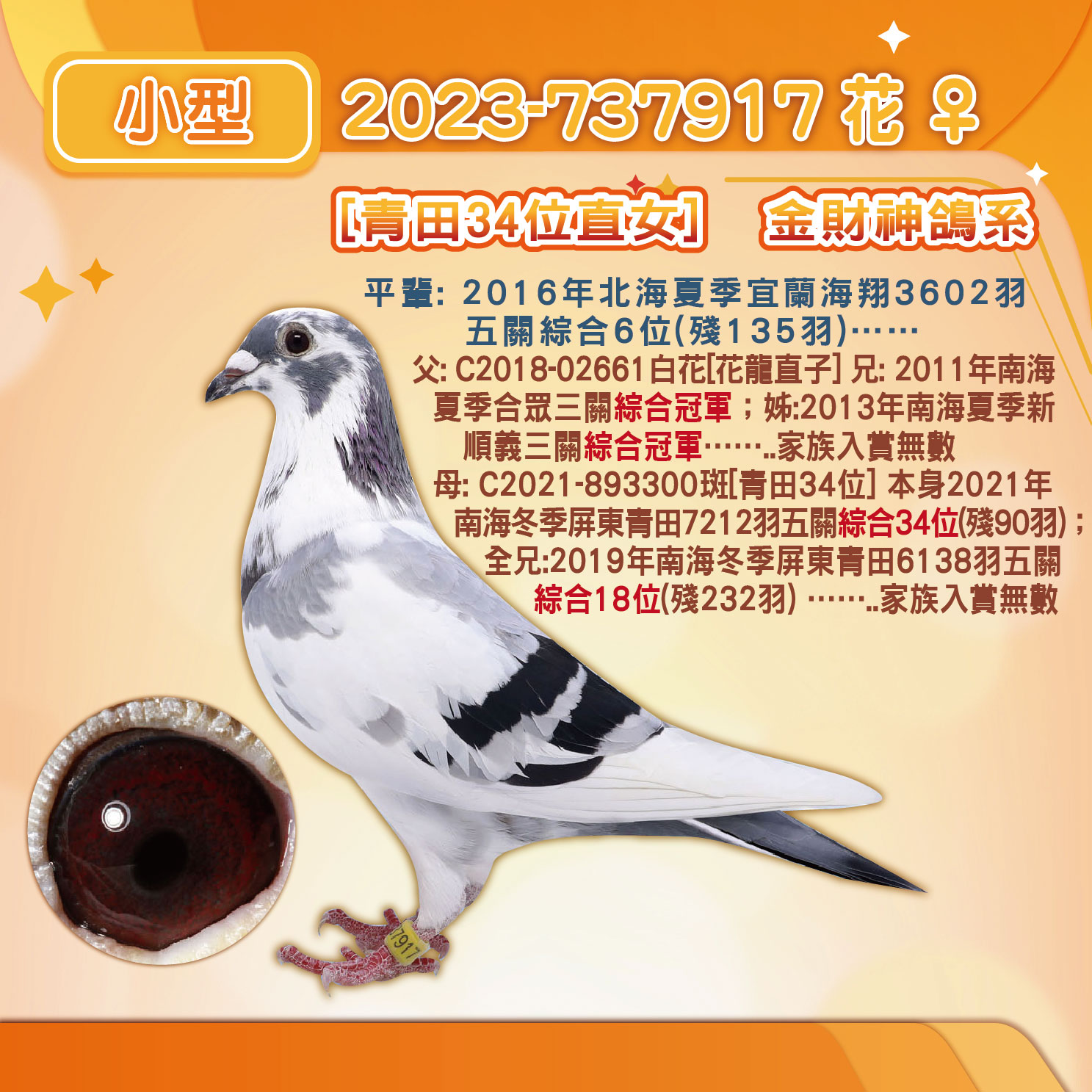 宜蘭海翔綜合107位直⼦X青⽥綜合34位直女 父:2023-323350灰2016年北海夏季宜蘭海翔聯合會3602⽻五關綜合107位殘存135⽻